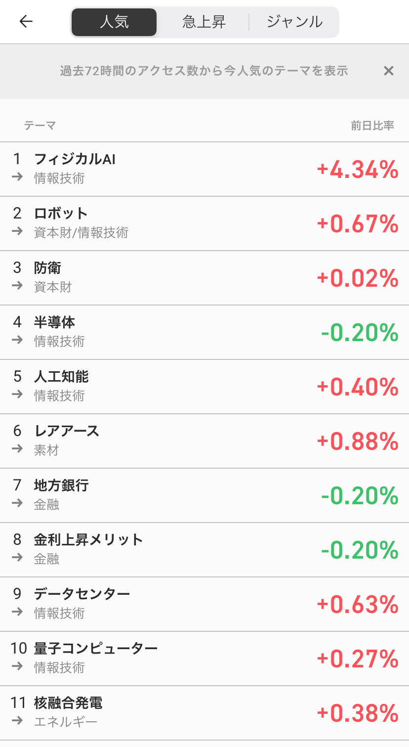 12月10日、日経が下がった日も、フィジカルAIがテーマの銘柄は平均で+4.34%の上昇がありました!